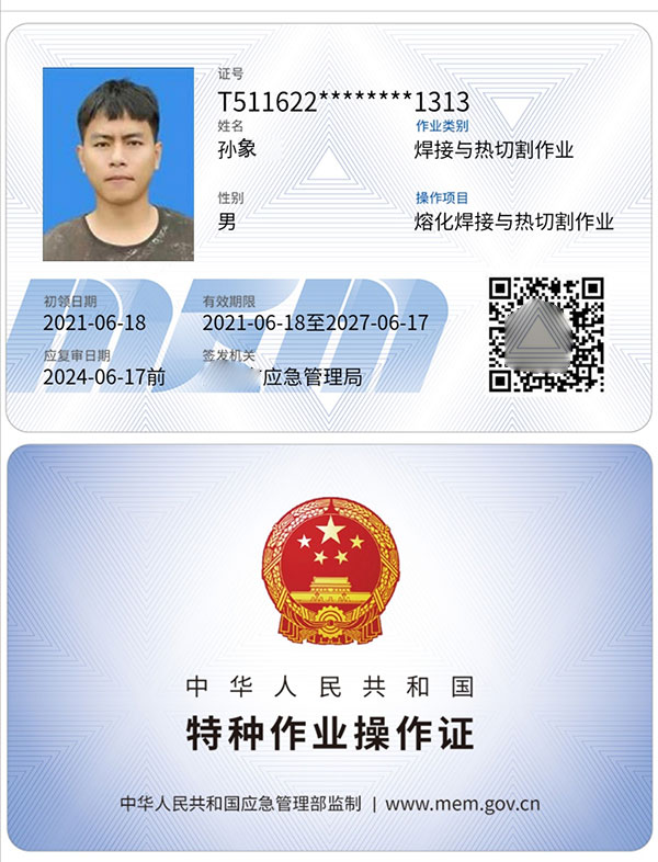 低壓電工作業(yè),高壓電工作業(yè),熔化焊接與熱切割作業(yè)-焊工證,電力電纜,繼電保護,電氣試驗,防爆電氣作業(yè),高處安裝維護拆除作業(yè),登高架設作業(yè),制冷與空凋設備運行操作作業(yè),制冷與空凋設備安裝修理作業(yè),施工吊裝作業(yè),施工挖裝作業(yè),危化品負責人/管理人員,危化品從業(yè)人員上崗證,3年一審,終身使用。