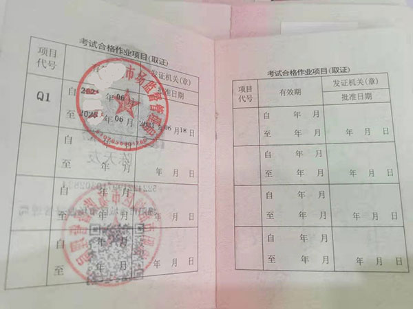 考試內(nèi)容分理論知識(shí)和實(shí)際操作。理論考試題目數(shù)量為100題,考試時(shí)間為60分鐘。實(shí)際操作考試內(nèi)容為部件識(shí)別、基本操作、應(yīng)急處置,70分及格,證書(shū)由市場(chǎng)監(jiān)督管理局頒發(fā)的證書(shū)!