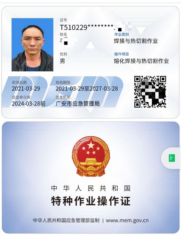 熔焊,又叫熔化焊,是一種最常見的焊接方法。所謂熔焊,是指焊接過程中,將聯接處的金屬在高溫等的作用下至熔化狀態而完成的焊接方法,可形成牢固的焊接接頭。由于被焊工件是緊密貼在一起的,在溫度場、重力等的作用下,不加壓力,兩個工件熔化的融液會發生混合現象。待溫度降低后,熔化部分凝結,兩個工件就被牢固的焊在一起,完成焊接的方法。由于在焊接過程中固有的高溫相變過程,在焊接區域就產生了熱影響區。固態焊接和熔焊正相反,固態焊接沒有金屬的熔化。特種作業-熔化焊接與熱切割作業-焊工操作證,這個焊工證不分等級,由各省安全生產監督管理局(簡稱省安監局)頒發,哪里發的都可以通用。3年年審一次,6年換一次,證件過期無效。