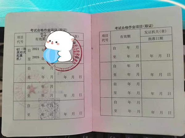 只考取了其中一項作業證,是不能操作其他工種的,每種起重機司機證是不通用的,這個一定要分清楚!