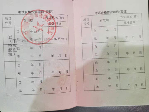 只考取了其中一項作業證,是不能操作其他工種的,每種起重機司機證是不通用的,這個一定要分清楚!