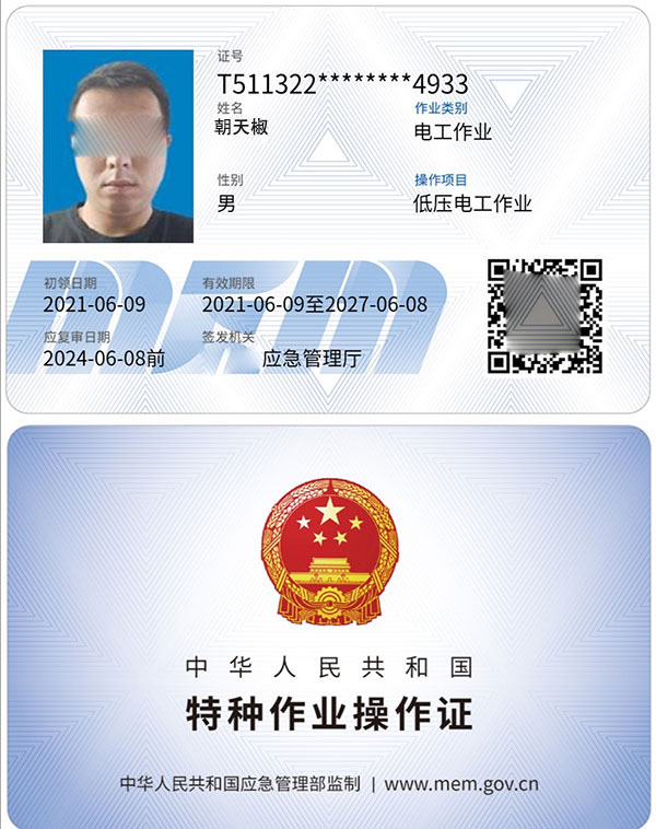 《特種作業(yè)證》特種上崗操作證由應急管理部 頒發(fā),哪里發(fā)的都可以通用的,以前叫IC卡,現(xiàn)在叫感應卡,3年年審一次,和身份證一樣的,只要你有專用的讀卡機,就能夠讀出卡里面的資料,但是這個讀卡機國家只給有資質(zhì)的單位,比如學校,應急管理廳等才有,這證不管你拿去哪里,只要有讀卡機的地方都可以讀卡與年審,查詢方式也可以上發(fā)證部門應急管理廳的網(wǎng)站,上輸入證號查詢的,也可以用微信掃IC上面的二維碼查詢。