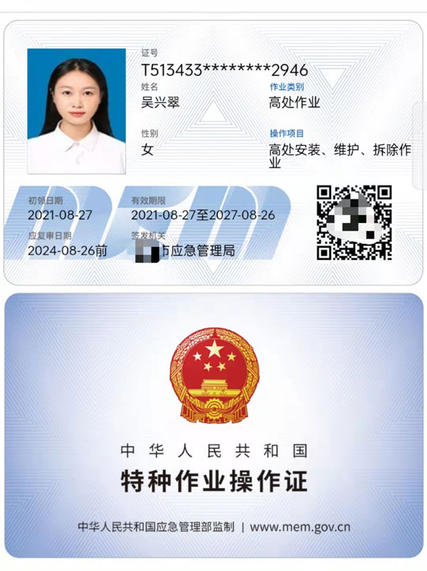 質(zhì)監(jiān)局特種作業(yè)證-樣版