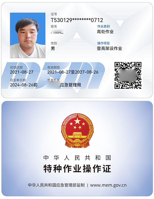 1、兩種不同的操作項目的證件名稱都叫高處作業證。