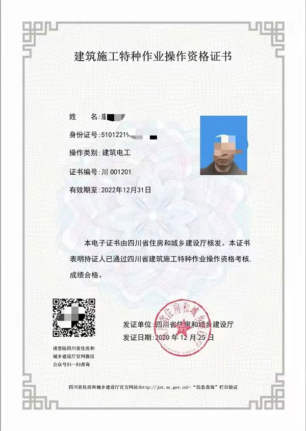住建廳發(fā)的電工證全名叫做:建筑施工特種作業(yè)操作資格證!操作類別為建筑電工!這個(gè)證只能從事建筑類的電工作業(yè),比如:樓房施工,水利,修路,橋梁,石油這些建筑工地使用! 其余的電工作業(yè)只認(rèn)安監(jiān)局頒發(fā)特種作業(yè)操作證!住建廳的證無(wú)效,比如小區(qū)物業(yè),公司廠房,煤礦這些的維護(hù)電工!