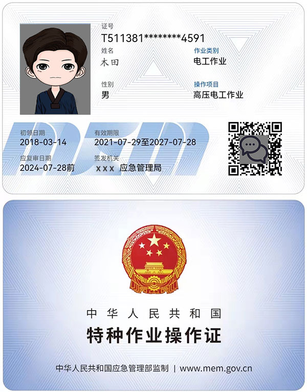 高壓電工證是從事特殊工種作業人員必須熟悉相應特殊工種作業的安全知識及防范各種意外事故的技能。要求從業人員必須持卡(IC卡)上崗,即《中華人民共和國特種作業操作證》方可上崗,此證書全國通用。老版證書每2年復審一次,新版高壓電工特種作業操作證復審是每3年復審1次。