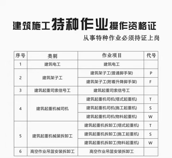 四川省建設(shè)廳特種作業(yè)證包括以下工種:
