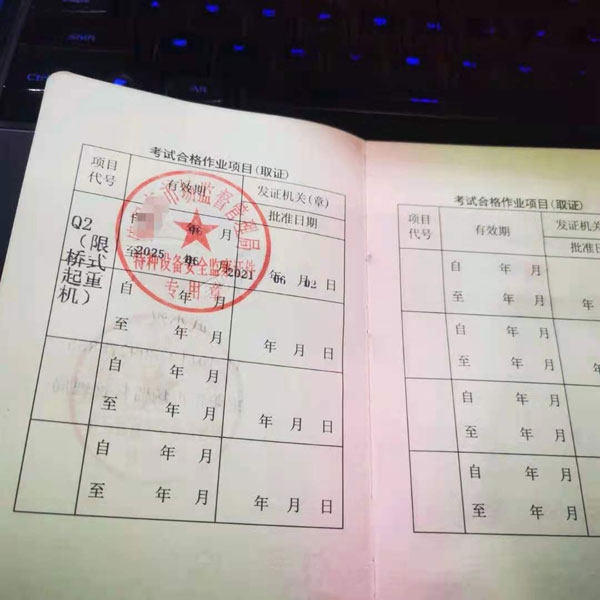 只考取了其中一項作業(yè)證,是不能操作其他工種的,每種起重機司機證是不通用的,這個一定要分清楚!