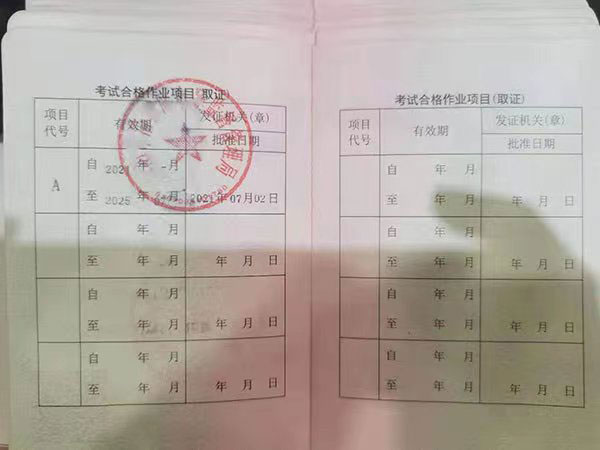 叉車司機-叉車證N1,電梯維修T,特種安全設備管理A,起重機指揮Q1,起重司機(限門座式起重機)Q2,起重司機(限橋式起重機)Q2,起重司機(限門式起重機)Q2,起重司機(限纜索式起重機)Q2,起重司機(限塔式起重機Q2,起重司機(限流動式起重機Q2,觀光和觀光列出司機N2,工業鍋爐司爐G1,鍋爐水處理G3,快開門式壓力容器操作R1,移動式壓力容器充裝R2,氣瓶充裝P,金屬焊接操作-壓力焊PE焊,非金屬焊接操作-壓力容器焊,食品檢驗員,化學檢驗員,農產品檢驗員(4年一審,需要到期前3個月進行)(4年一審,需要到期前3個月進行)