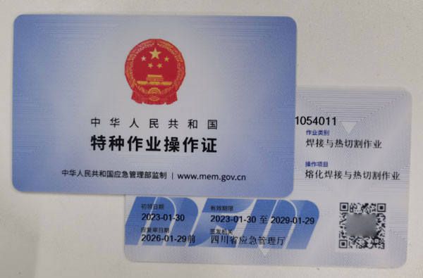 應急管理局,的小卡片也就是我們說的上崗證,無論是你要考低壓還是高壓都一定要安監局出的證!